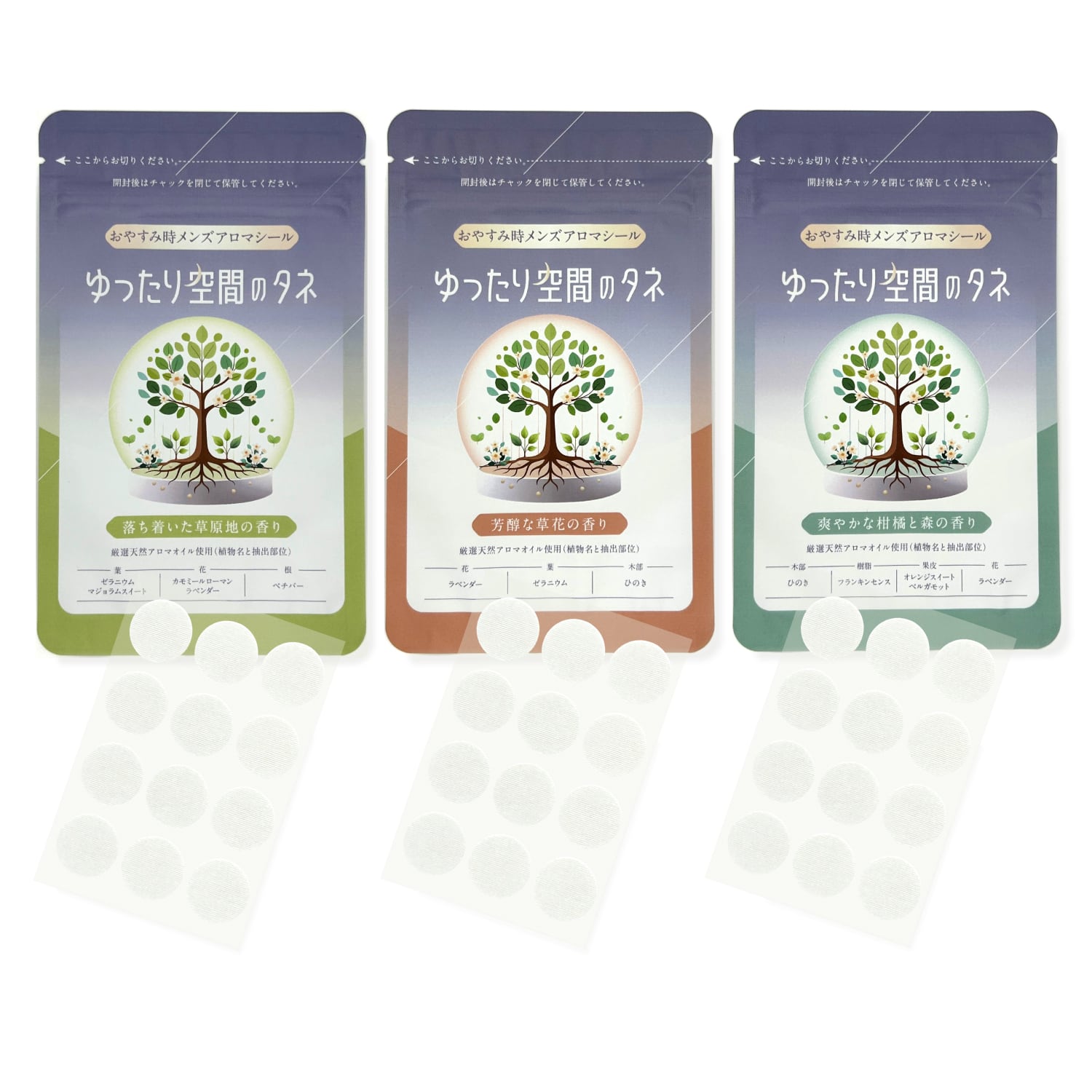【内容量】アロマシール12枚入り×3袋(落ち着いた草原地の香り・芳醇な草花の香り・爽やかな柑橘と森の香り 各1袋)